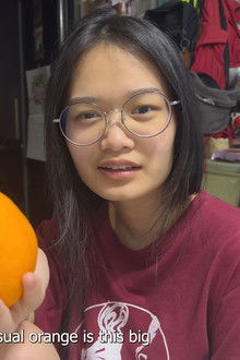 On Chinese New Year, a girl questioned the size of her orange.
