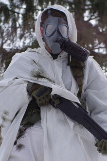 A stoic and battle-hardened Bastion Hunter roams the zone, seeking out a remnant with an unwavering resolve.