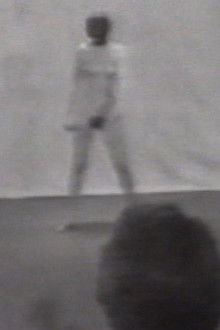 Marina Abramović Freeing the Body was performed at the Künstlerhaus Bethanien in Kreuzberg, where Abramović began dancing frantically to the sounds of a bongo player. During the early part of the performance, she still has plenty of energy, and she rocks her hips and upper body vigorously to and fro. Over the course of the six hours, exhaustion sets in. Abramović falls back on a single monotonous movement, now and then visibly exerting herself in an attempt to reivigorate her body. After a final convulsive movement, in which she tries to give her all for one last time, she allows herself to collapse onto the floor and remains lying there, completely exhausted. During the performance, Abramović's head was covered by a black scarf. In this way, the audience was not distracted by Abramović as a person or personality, and attention can be focused on the body, which, due to its anonymity, has become an abstraction.