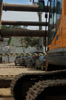 The way to the bus stop is the same everyday in this remote semi rural neighborhood. But when concrete blocks and trucks start to appear on the middle of the street, it's necessary to take a detour. The landscape and daily routine of the residents are completely changed.