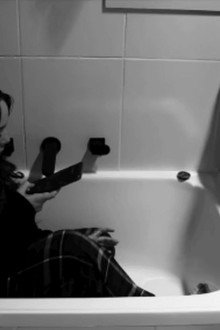 A young woman kills time in a bathtub by doing her nails, observing matches, and performing self-reflection.