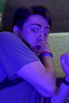 After a long day of editing, Bryson exits the lab and enters the hall to find a dark, glowing figure at the end of it.