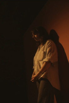 A young man and woman say goodbye to one another in an abstract representation of an apartment entrance. He is leaving. They struggle to separate. They exchange a piece of paper, which hints at their past together, as a farewell gift.