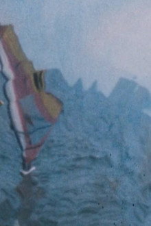 Reworked and colored images of people playing at the seashore.