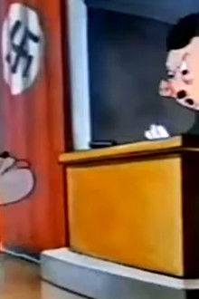 Private Gandy Goose and Sergeant Sourpuss go in hot pursuit of Adolf Hitler and Benito Mussolini, depicted respectively as a hog and an oversized monkey.