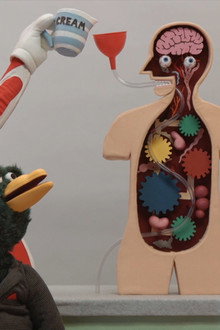 The two remaining puppets learn about eating healthy, but things go awry when they receive a mysterious phone call.