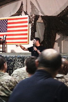 A comedy documentary about performing stand-up comedy for U.S. Troops stationed in Afghanistan, Kuwait and Iraq. Heartfelt interviews with top professional comedians are woven in with filmmaker Jordan Brady's first-hand experience going to the Middle East. While traveling (Spring 2016) brutal terrorist attacks in Brussels, Turkey and Iraq remind us of the dangers in thew world, and underscore the mission to provide laughter for the men and women serving the military.