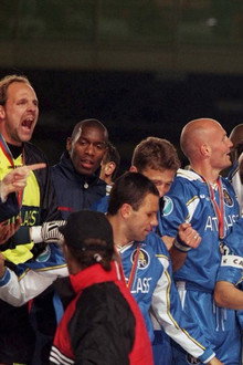 In only 3 short months since his appointment as player/manager, the legendary Gianluca Vialli has led Chelsea to an historic cup double. This video looks back on an incredible season for all at Stamford Bridge. In March, goals from Frank Sinclair and Roberto Di Matteo won the Coca-Cola Cup and then, on Wednesday 13th May, a sensational strike from Gianfranco Zola brought European glory back to London as Chelsea became the first British side to win the European Cup Winners Cup twice. Domestically, a strong Premiership campaign saw Chelsea finish 4th, an improvement on previous years. All the action from EVERY game is here with goals galore from your favourite Chelsea players, including Mark Hughes, Tore Andre Flo, Dan Petrescu and Steve Clarke.