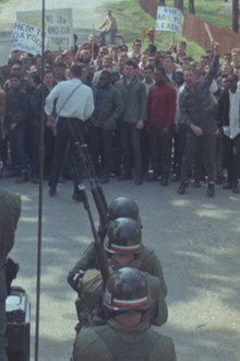 An archival documentary about the U.S. military’s response to the political and racial injustices of the late 1960s: take a military base, build a mock inner-city set, cast soldiers to play rioters, burn the place down, and film it all.
