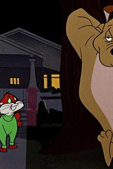 A muscular dog exploits a cat and a mouse for food, but they keep forgetting to bring him gravy!