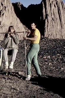 Oversand is one of the first films about free climbing, the third film in a series of three with "Overdon" and "Over-Ice". Directed by Jean-Paul Janssen, the film was shot in 35mm in Algeria, in the Sahara Desert, in the Tamanrasset region, on the walls of the majestic peaks of the Atakor massif, central sub-region of Hoggar, mountainous heart of Hoggar, a volcanic plateau of almost circular shape, whose average altitude is 2000 meters, and which culminates at Mount Tahat (2918m), the highest point in Algeria. The Atakor is distinguished by its spectacular volcanic peaks, its needles, and its rugged landscapes, resulting from the erosion of ancient volcanic chimneys, which make it the most emblematic summits of the Hoggar, such as the Assekrem, the Ilamane, or the Tizouyag, where climbers Patrick Edlinger, Patrick Bérhault, Bernard Gorgeon, Hugues Jaillet, Jacques Perrier, Stéphane Troussier and Odette Schoënleb evolve under the watchful eye of the Tuareg caravans.