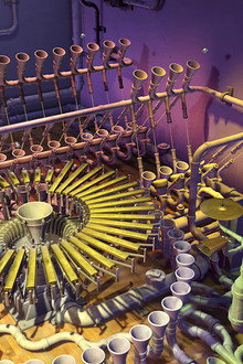 Animusic is an American company specializing in the 3D visualization of MIDI-based music. Founded by Wayne Lytle, it is incorporated in New York and has offices in Texas and California. The initial name of the company was Visual Music, changed to Animusic in 1995. The company is known for its Animusic compilations of computer-generated animations, based on MIDI events processed to simultaneously drive the music and on-screen action, leading to and corresponding to every sound. Unlike many other music visualizations, the music drives the animation. While other productions might animate figures or characters to the music, the animated models in Animusic are created first, and are then programmed to follow what the music "tells them" to. 'Solo cams' featured on the Animusic DVD shows how each instrument actually plays through a piece of music from beginning to end.